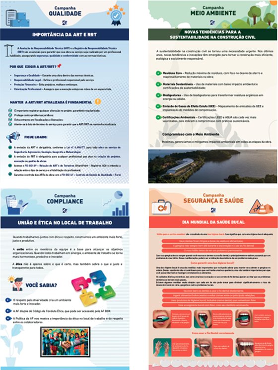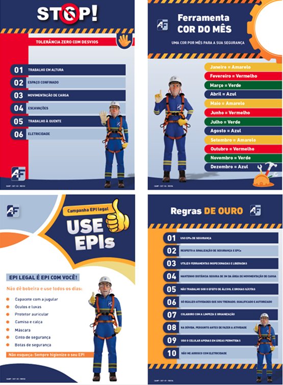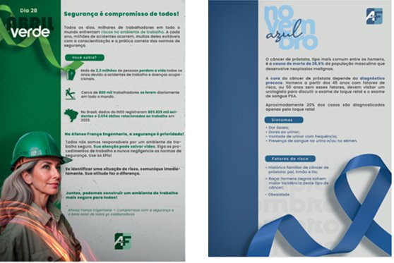 As campanhas fixas e mensais de SGI seguem padrões visuais estabelecidos e integram a identidade visual de todas as obras. Todas as peças estão acessíveis no Sharepoint.