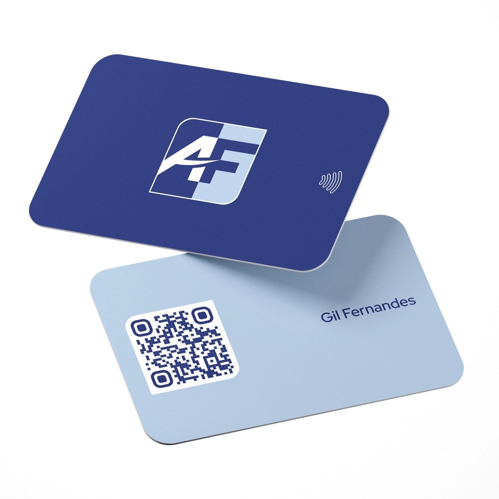 Nosso cartão de visitas é inovador e sustentável. Ele é único porque agora você não precisa entregá-lo, basta aproximá-lo. É também definitivo, já que as informações não são impressas, mas sim armazenadas na nuvem.
