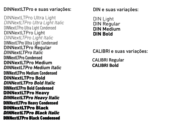 TipografiaTodas as famílias tipográficas estão disponíveis aqui.As logomarcas das empresas do GRUPO AFONSO FRANÇA limitam-se as fontes Din nas versões Light e Bold. Tipografia de apoioAs tipografias de apoio para as mais diversas produções limitam-se as famílias tipográficas: Logos Cores