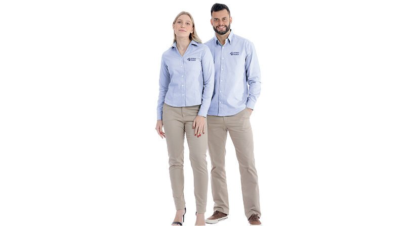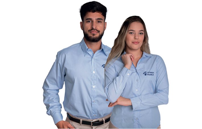 Manga longa, fechamento frontal em botões e modelagem tradicional. Composição: 70% algodão e 30% poliéster.