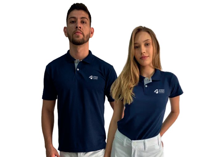 reforço interno na gola e acabamento em costura dupla. Modelagem reta com ótimo caimento. Tecido leve e resistente, composição 50% algodão e 50% poliéster. Cor azul marinho
